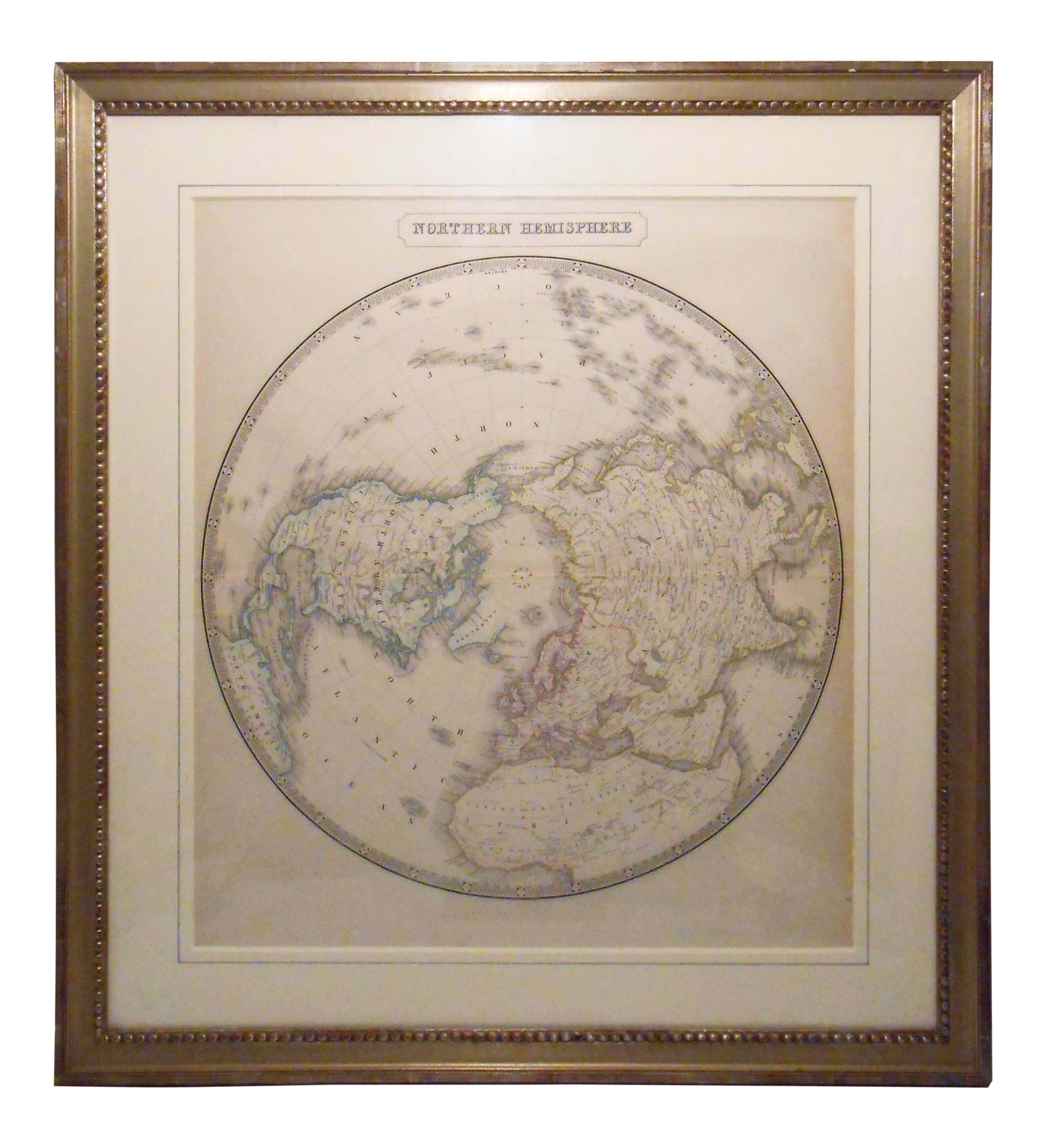 ANTIQUE NORTHERN HEMISPHERE LARGE FRAMED MAPDIMENSIONS: Frame: 24 ¼" Width x 30 ¾" Height x 1" Depth Map under the matting: 20 ¼" Width x 22 ¼" Height Weight: 10 lbs 9 oz